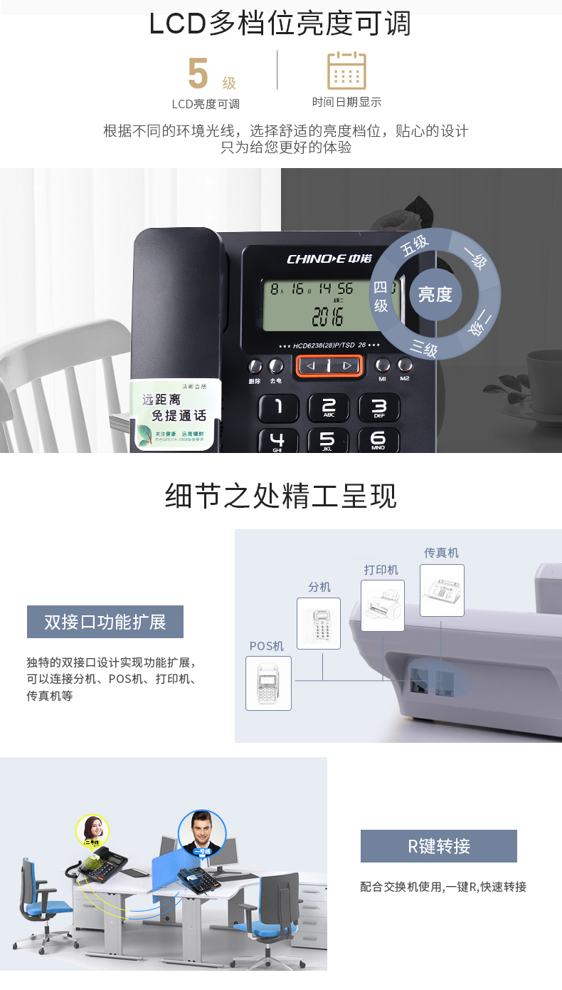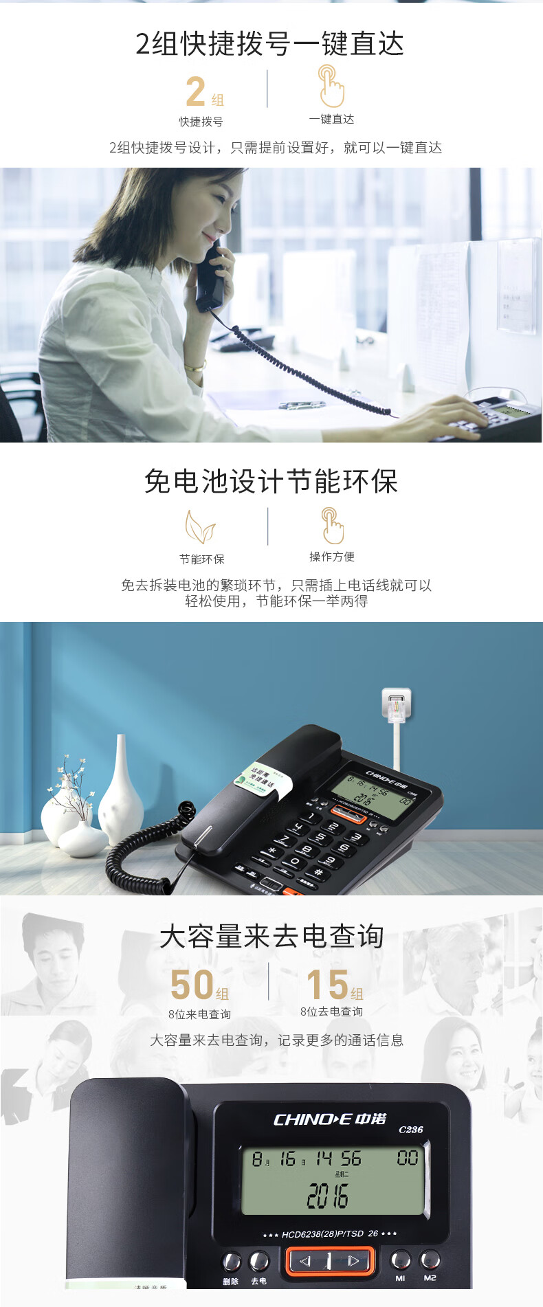 商品名称:中诺商务办公电话机座机家用来去电查询高清免提通话亲情按键C236 白色 单位:台