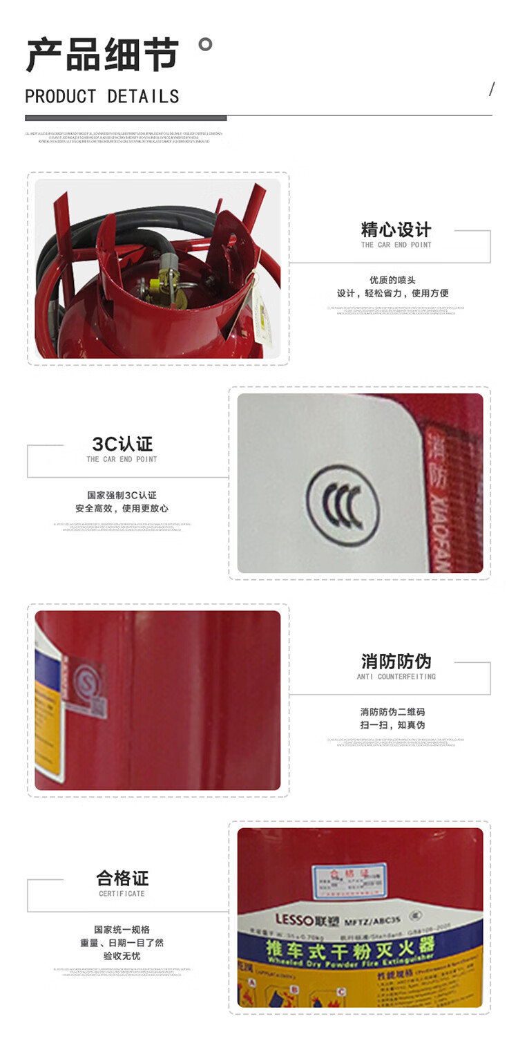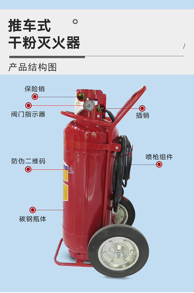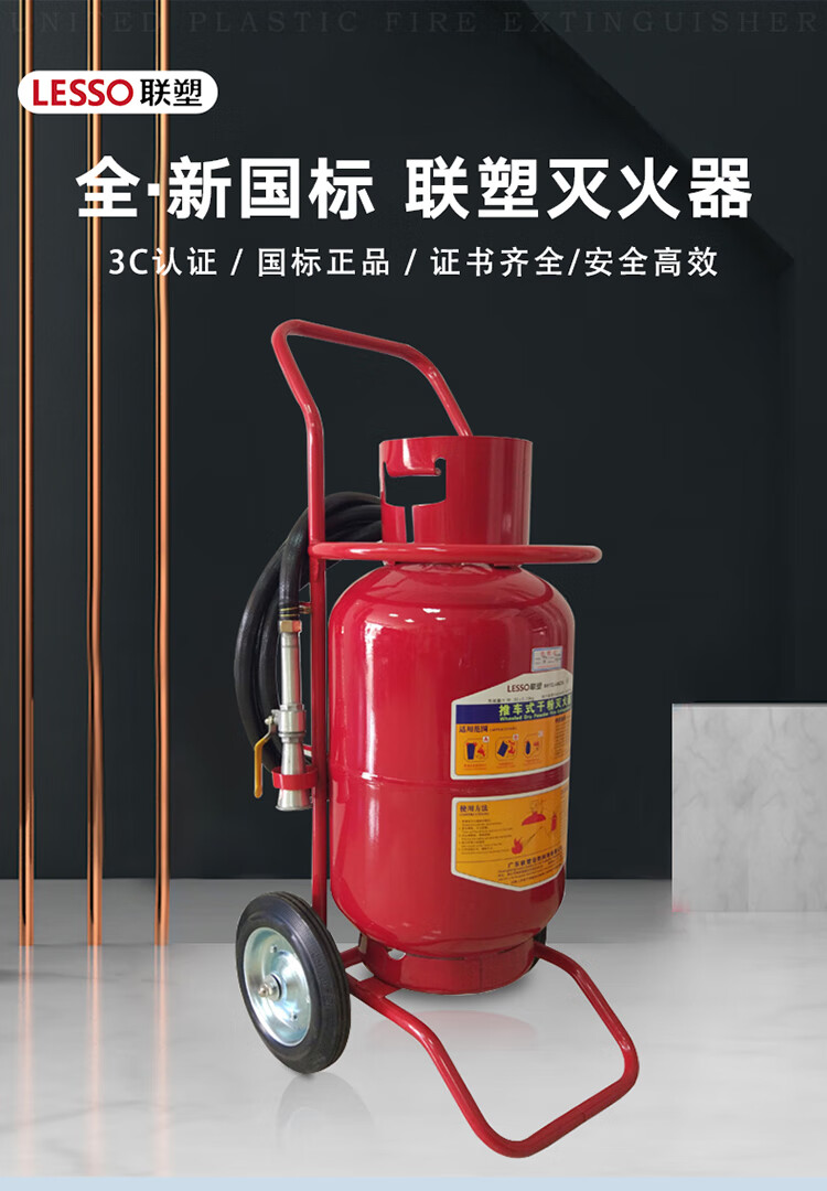 商品名称:联塑(LESSO)灭火器 MFTZ/ABC20A 推车式干粉灭火器20Kg 商用公司厂房灭火器20公斤 带3C认证标记 单位:个