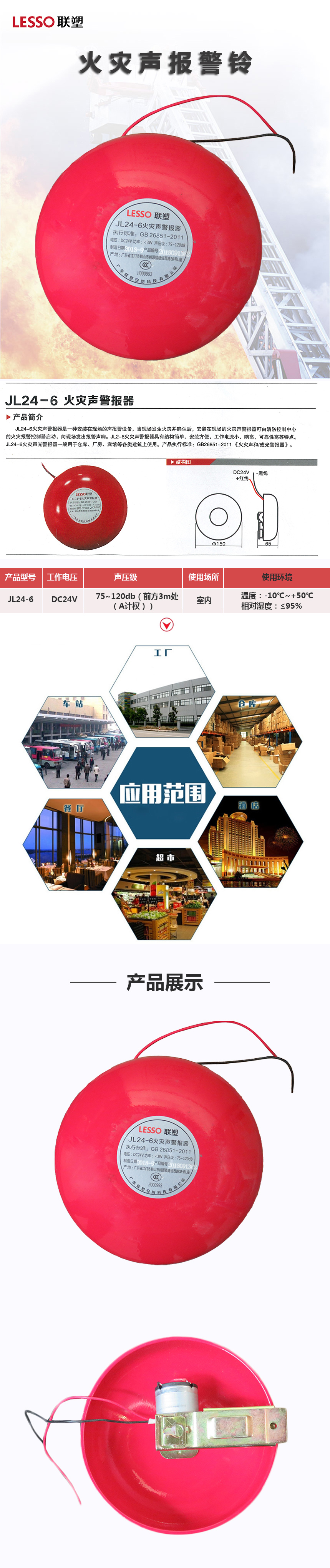 商品名称:联塑(LESSO)JL24-6 火灾声报警器 单位:个