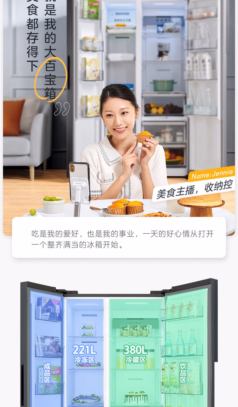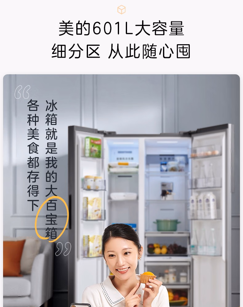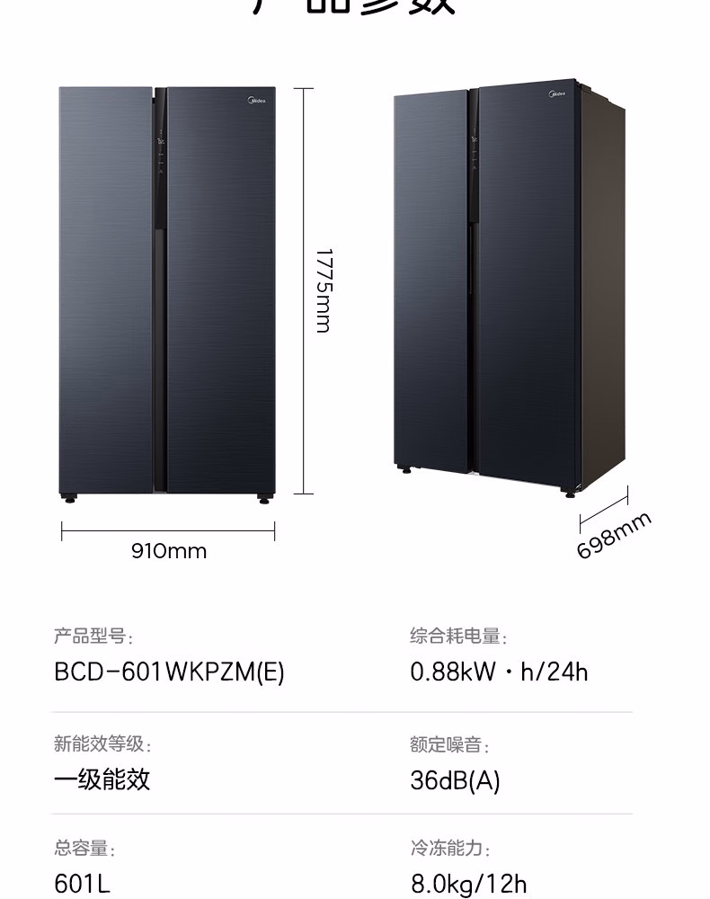 商品名称:美的-BCD-601WKPZM(E)-冰箱