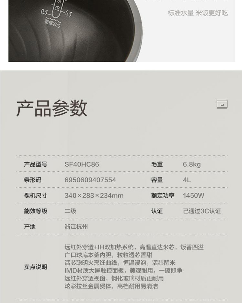 商品名称:苏泊尔-SF40HC86-电饭煲-4升