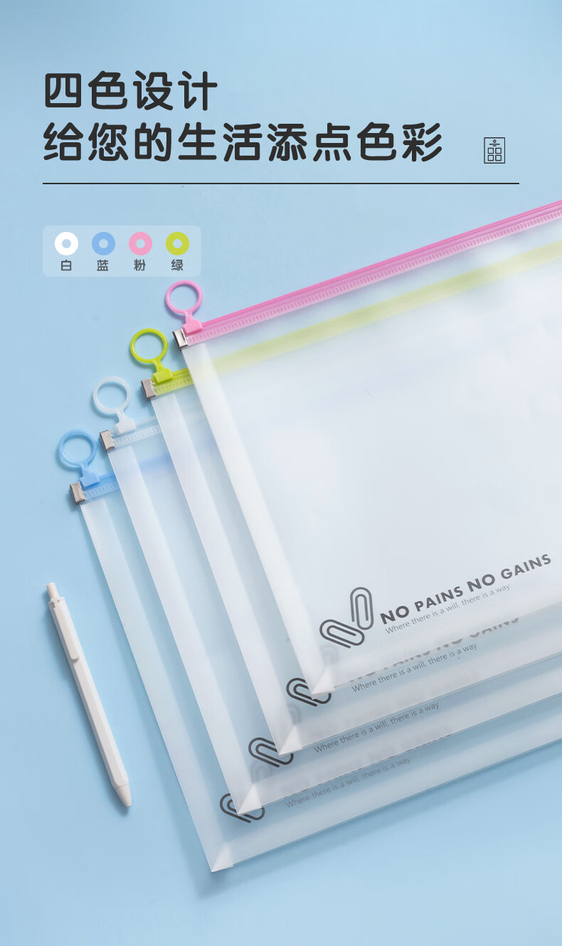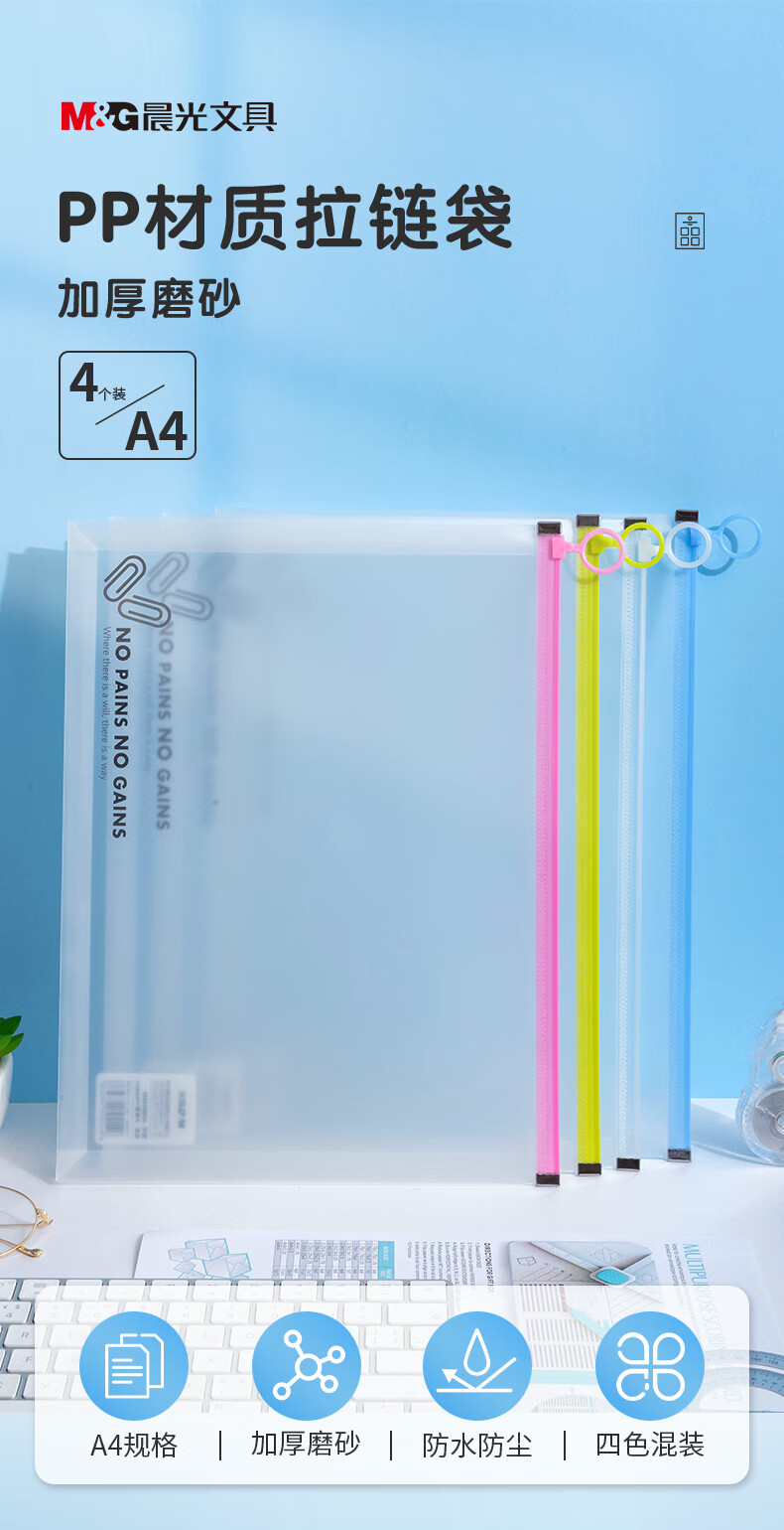 商品名称:晨光(M&G)文具A4/4色混装大容量拉边袋 pp材质大环拉边文件袋 资料袋收纳文具整理4个装ADMN4220 单位:个