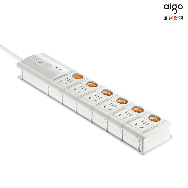 商品名称:爱国者(aigo)防雷插座/插线板/插排/排插/接线板/拖线板 抗电涌防过载防雷模块极性检测 6位分控S6K6全长3米 单位:个