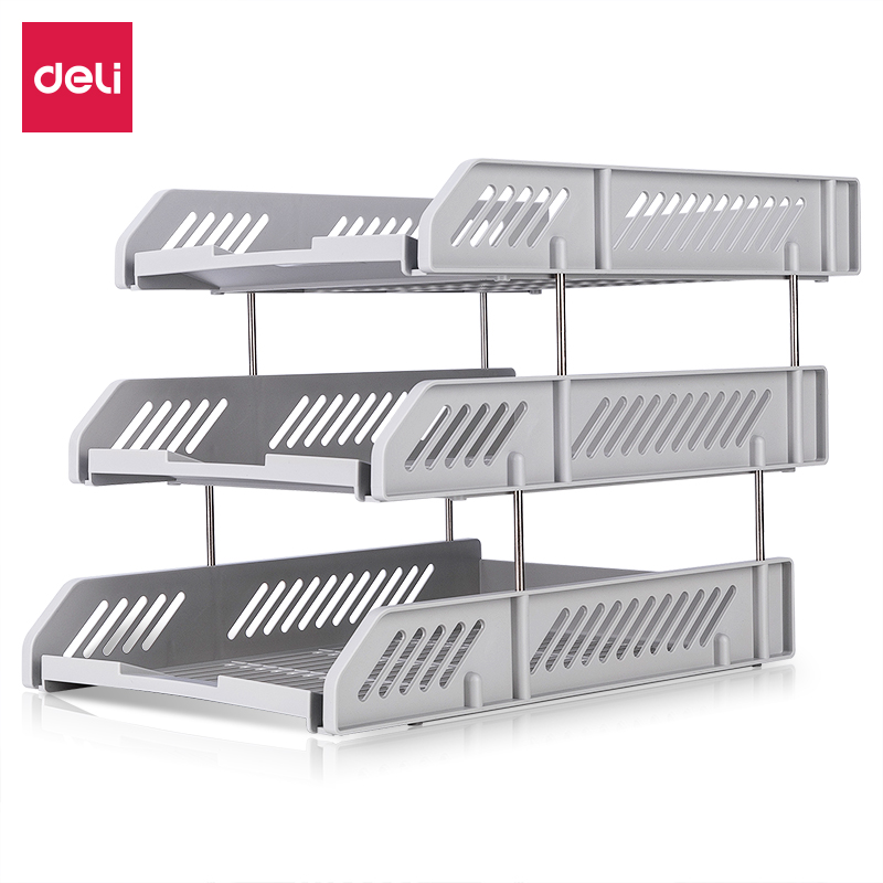 得力(deli)三层镂空收纳文件座 自由拆卸组装三层文件盘/文件框 灰色9209 单位:个