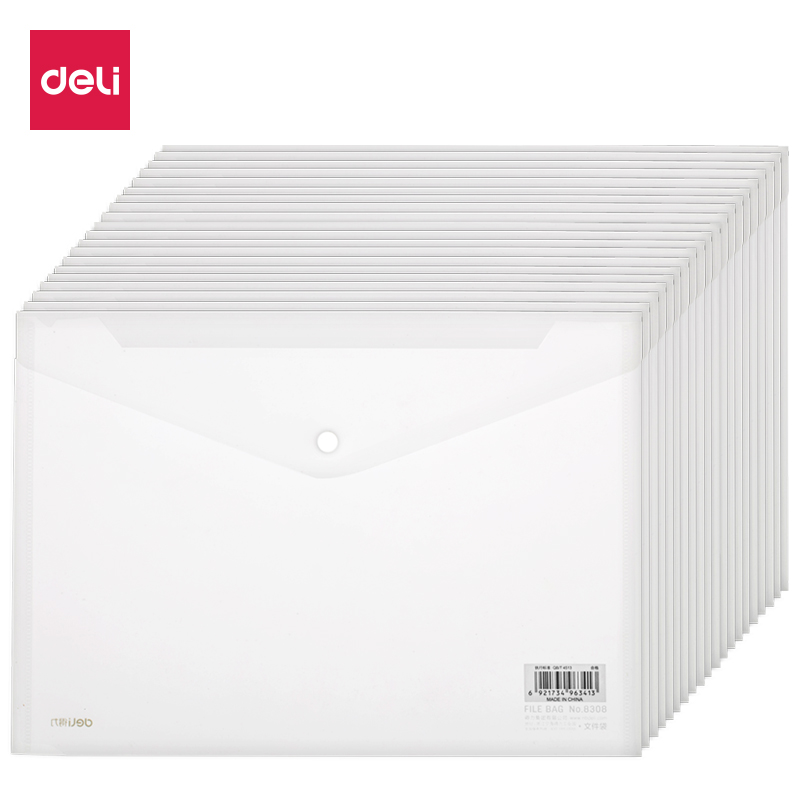 得力(deli)20只A4按扣学生桌面透明文件袋 试卷收纳文件套 学科分类 塑料防水档案袋 27008 20只/组 单位:组