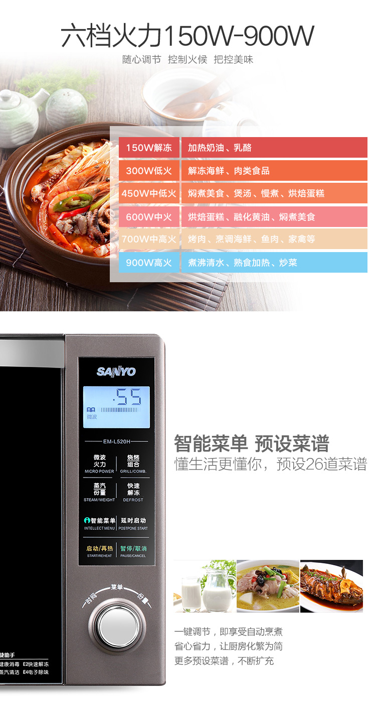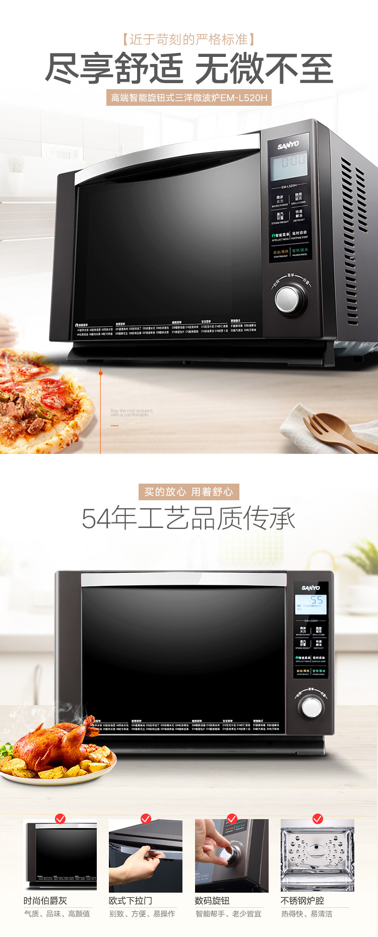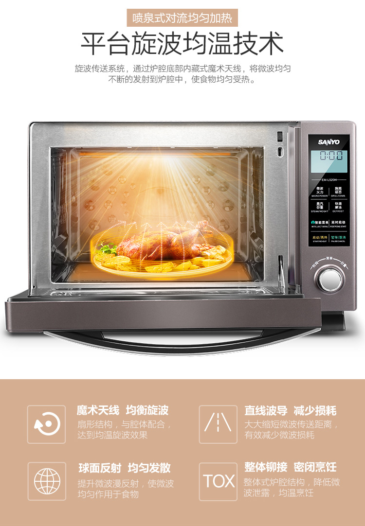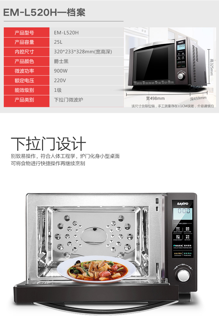 商品名称:三洋/Sanyo 微波炉25L智能旋钮式光波炉 EM-L520H