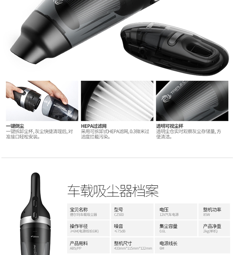 商品名称:德尔玛 /Deerma 车载吸尘器自营汽车吸尘器车用大功率 CZ500