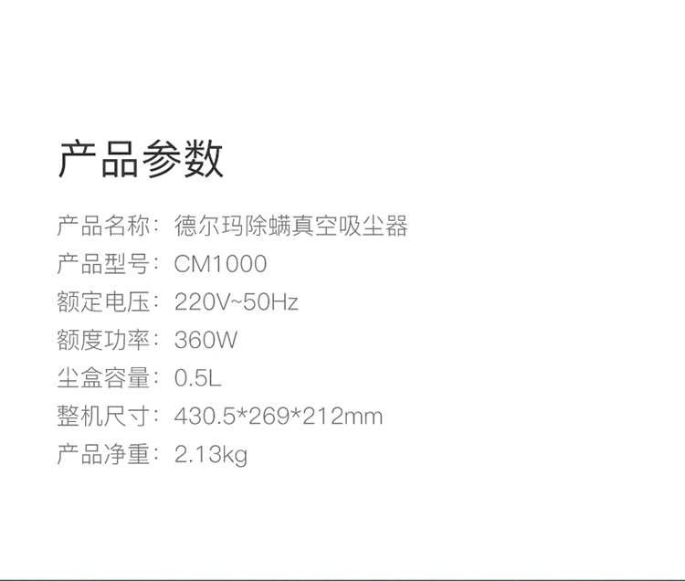 商品名称:德尔玛 /Deerma 紫外线除螨仪除螨机手持吸尘器家用 CM1000