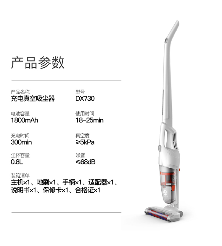 商品名称:德尔玛 /Deerma 小型家用真空立式无线吸尘器 DX730