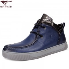 七匹狼 棉鞋时尚软皮头层牛皮男士休闲高帮真皮保暖皮鞋男鞋子