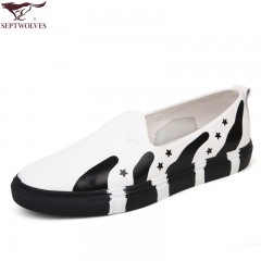 七匹狼 男鞋优质头层牛皮男士真皮时尚板鞋套脚休闲皮鞋子
