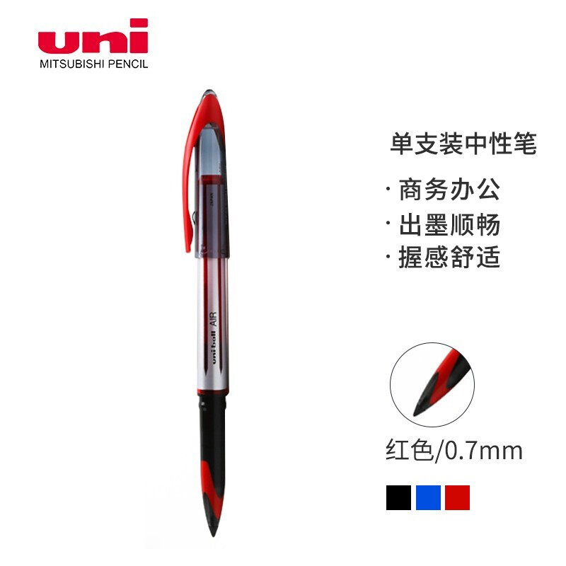 商品名称:三菱(Uni)黑科技AIR签字中性笔uni-ball漫画笔草图笔绘图笔UBA-188L红色0.7mm 单支装 单位:支