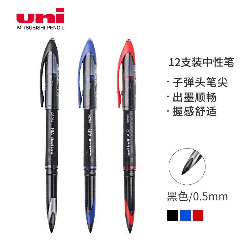 商品名称:三菱(Uni)黑科技AIR签字中性笔uni-ball漫画笔草图笔绘图笔UBA-188M黑色0.5mm 12支装 单位:盒
