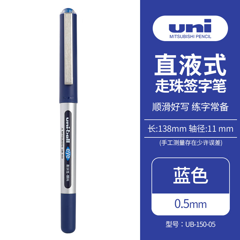 商品名称:三菱(Uni)UB-150中性笔直液式走珠笔签字笔 0.5mm耐水考试财务用笔 蓝色 单支装 单位:支