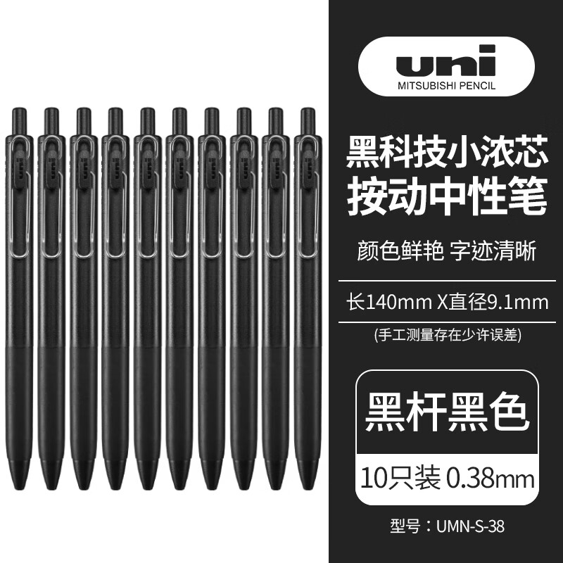 商品名称:三菱(uni)UMN-S-38小浓芯按动中性笔 uni-ball one系列0.38mm财务办公学生考试用签字笔 黑杆黑色 10支装 单位:盒