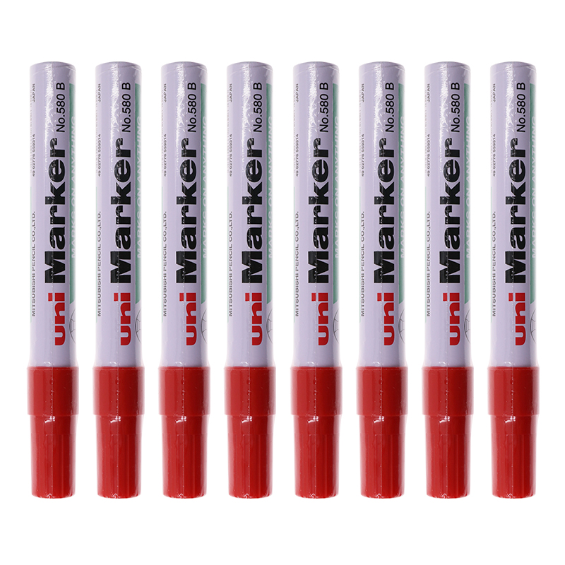 商品名称:三菱(Uni)单头油性记号笔马克笔 斜头方嘴大头笔 580B 红色12支装 单位:盒