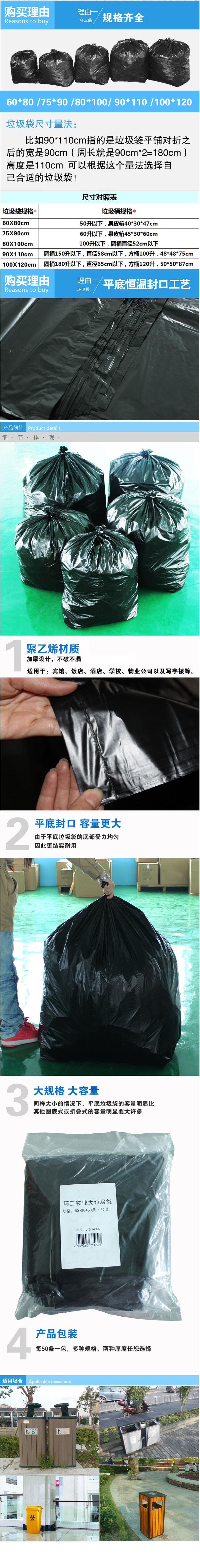 商品名称:谋福 9035 黑色加厚一次性垃圾袋 100*120cm 50只装 单位:包