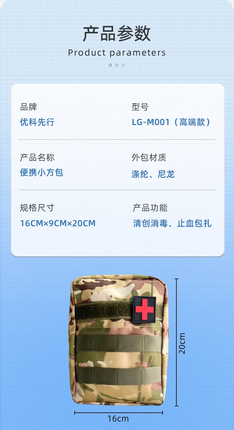 商品名称:优科先行便携小方包 便携急救包随身腰包医药收纳包 LG-M001(高端款) 单位:套