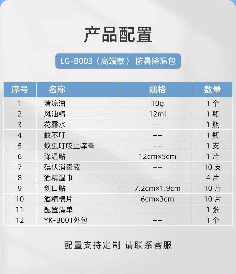 商品名称:优科先行防暑降温包LG-B003(高端款) 单位:套