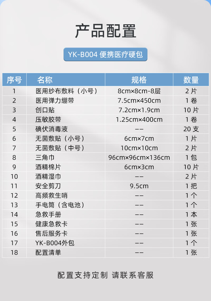 商品名称:优科先行便携急救包户外家用旅行应急包车载收纳包 YK-B004 单位:套