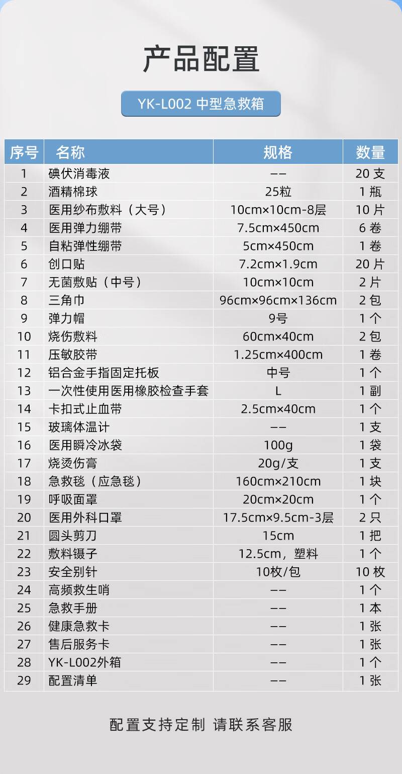 商品名称:优科先行急救箱户外家用全套救护药物箱整理收纳箱小药箱YK-L002 单位:套