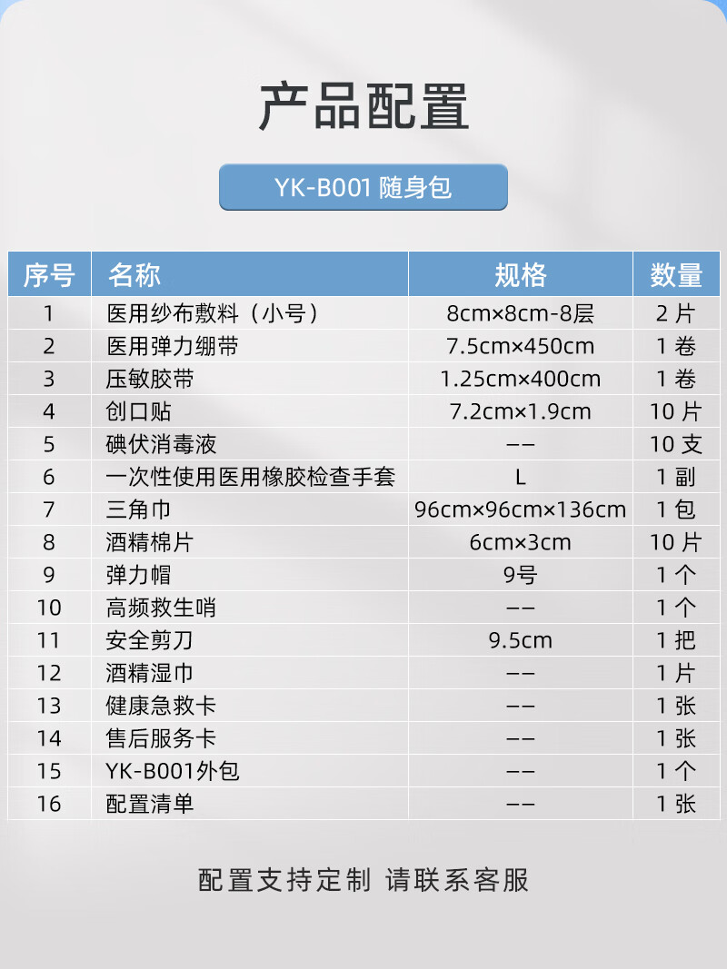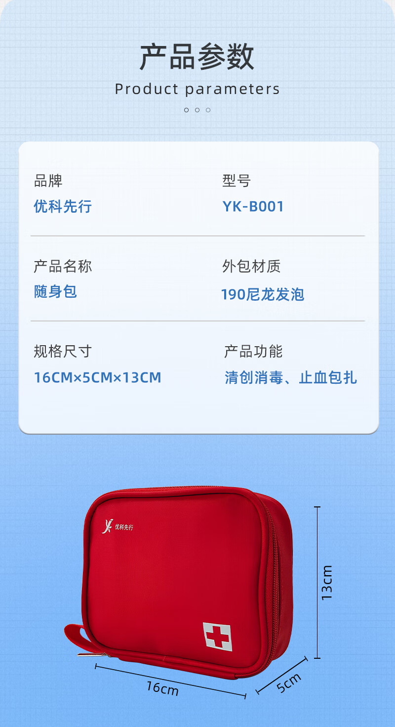 商品名称:优科先行便携急救包户外旅行医药包家庭自救应急包 YK-B001 单位:套