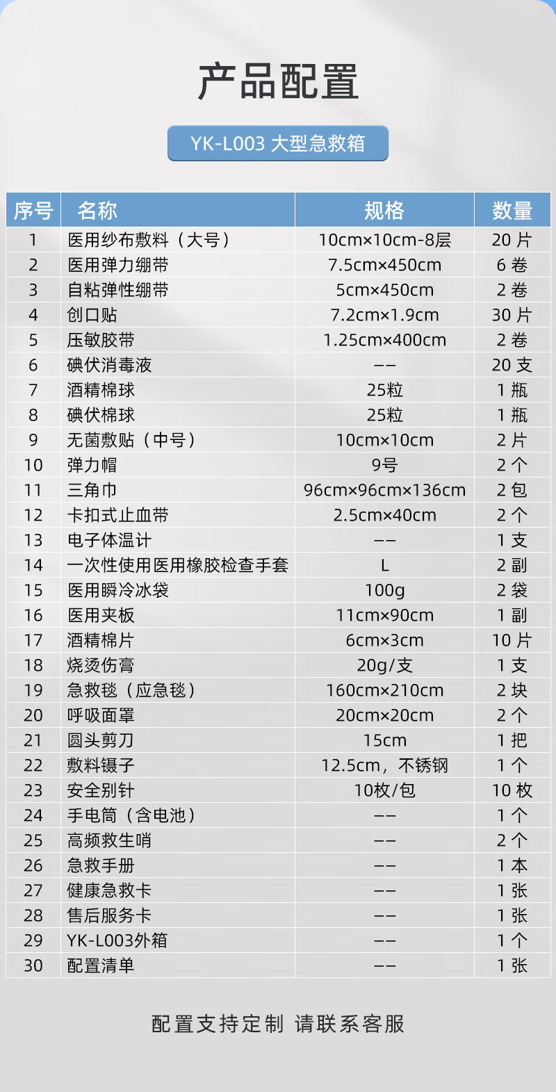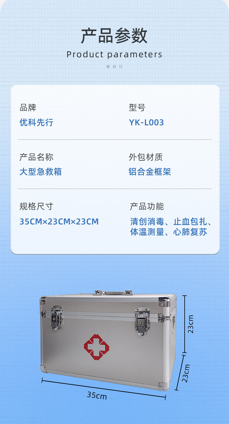 商品名称:优科先行大型综合医药箱企业家庭大容量急救箱套装收纳箱YK-L003 单位:套