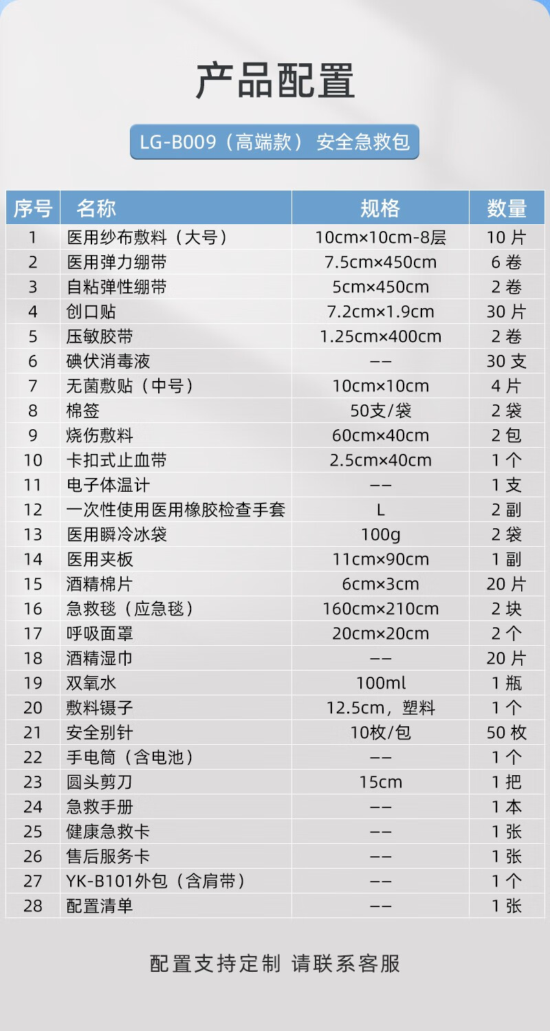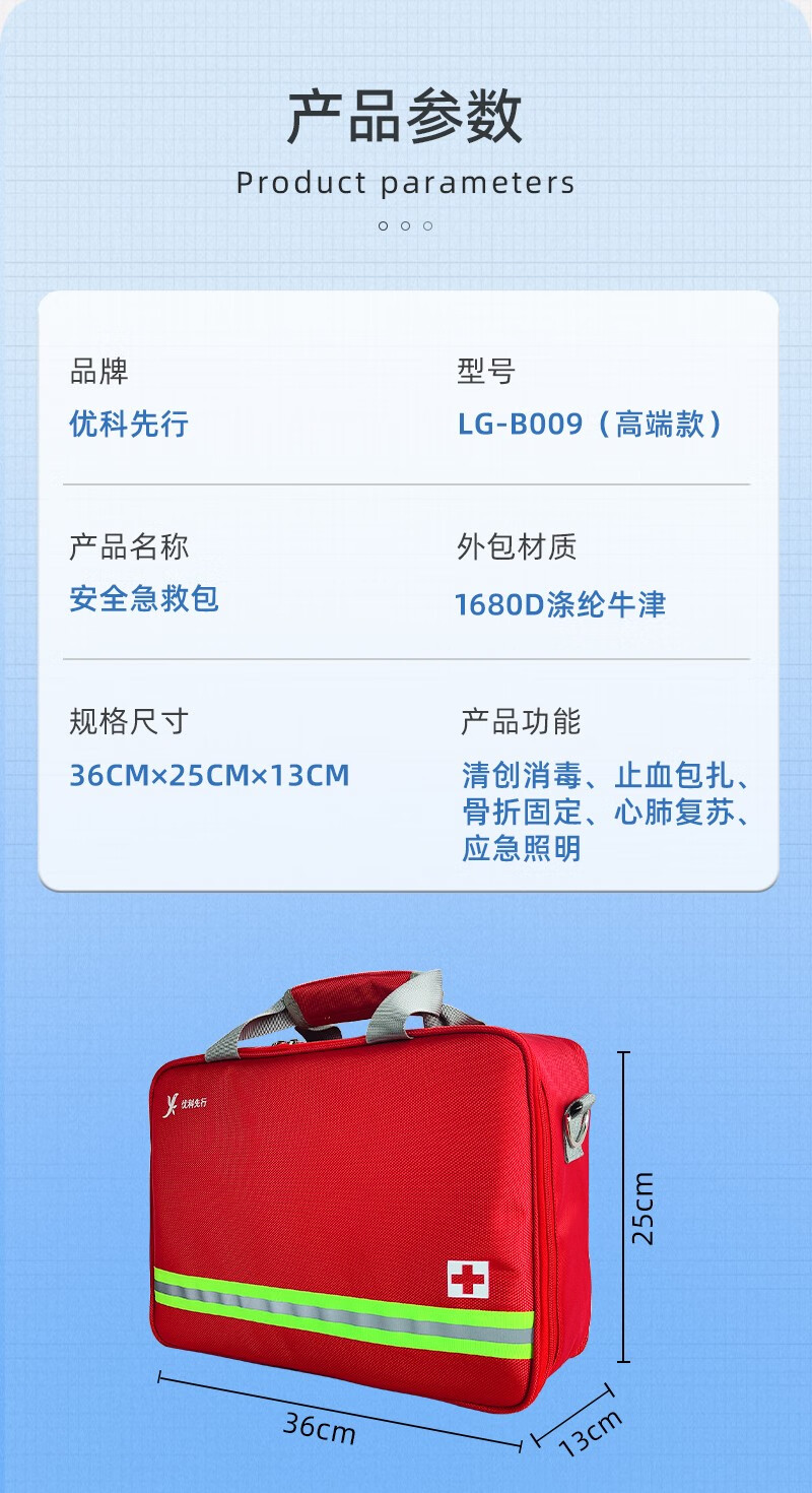 商品名称:优科先行安全急救包生产检查应急救援包套装野外生存包 LG-B009(高端款) 单位:套
