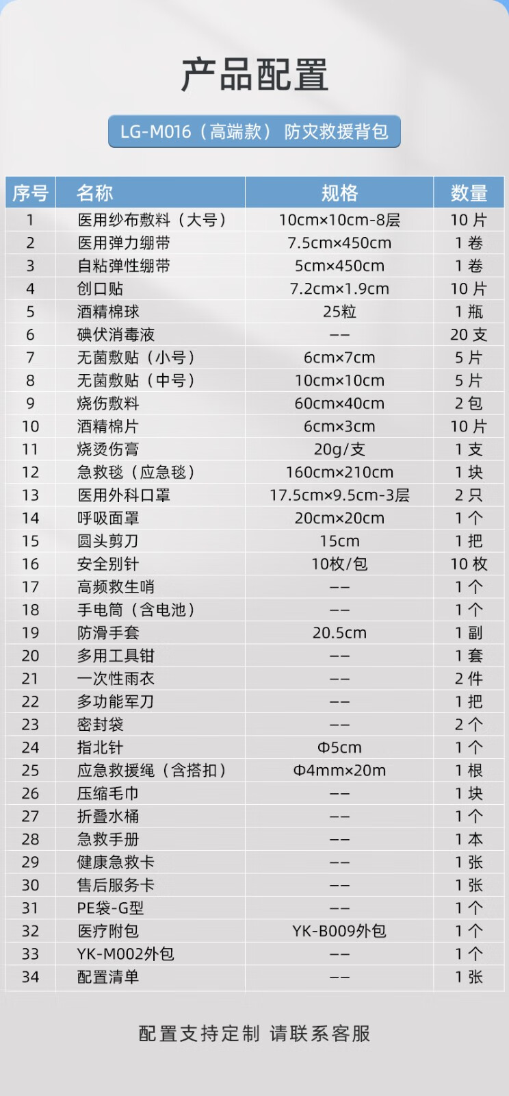 优科先行加强版防灾应急包 LG-M018(高端款) 单位:套