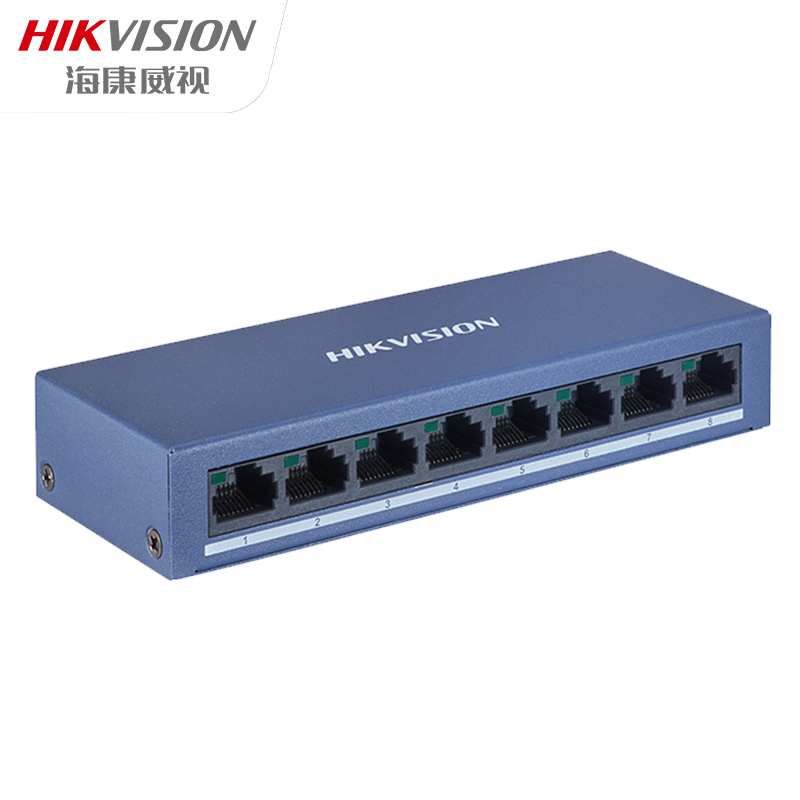 商品名称:海康威视 交换机8口百兆非网管型(非POE供电)网络监控交换器高兼容网线分流器金属机身 单位:个