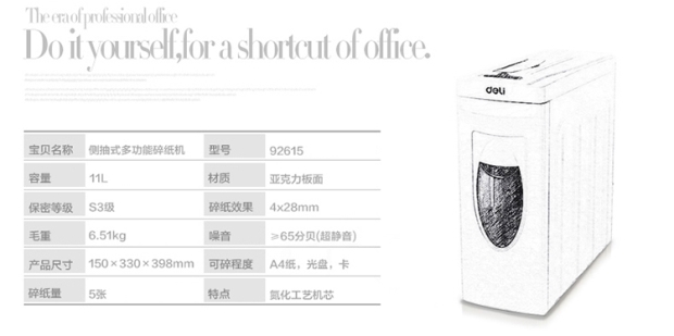商品名称:得力 创意侧抽式多功能碎纸机 92615