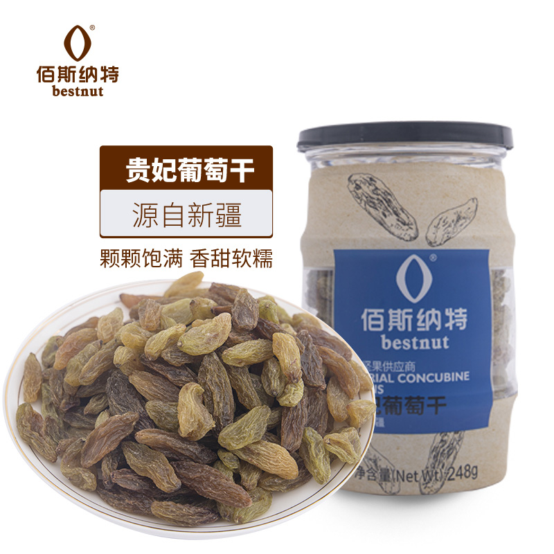商品名称:佰斯纳特(bestnut) 贵妃葡萄干 大颗粒免洗罐装提子干蜜饯果干新疆特产休闲零食小吃 C罐/248g【精选大颗葡萄干】 单位:罐
