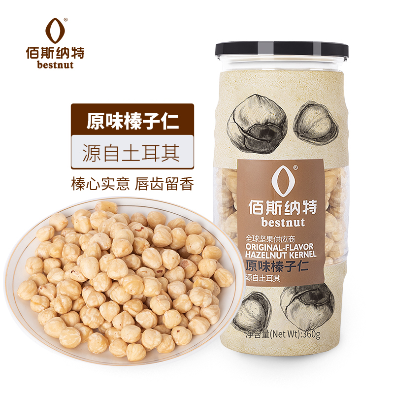 商品名称:佰斯纳特(bestnut) 原味榛子仁 土耳其无壳榛子仁大颗粒罐装坚果炒货零食休闲小吃 【日期新鲜】B罐/360g 单位:罐