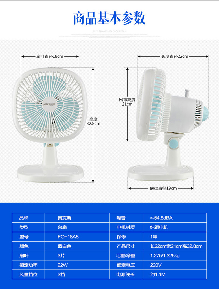 商品名称:奥克斯 电风扇台式台扇摇头 FO-18A5
