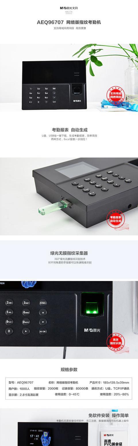 商品名称:晨光 网络版指纹考勤机 打卡机 免安装 自动报表 AEQ96707