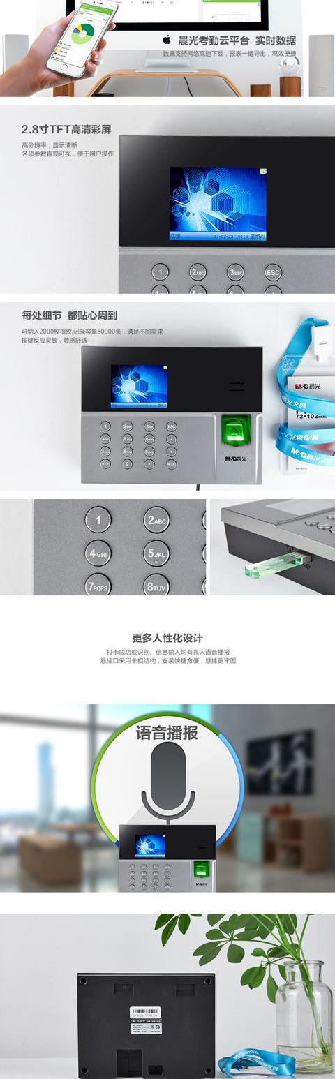 商品名称:晨光 考勤机高效识别指纹式考勤机智能语音播报AEQ96708