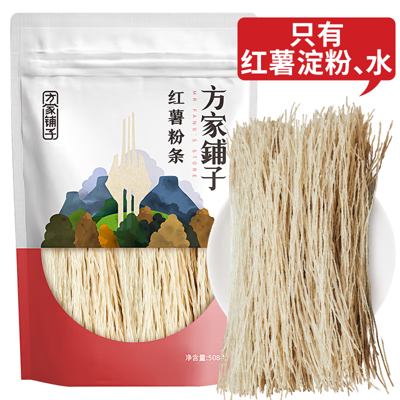 商品名称:方家铺子纯红薯粉条508g 久煮不糊 酸辣粉丝 方便速食火锅食材 单位:包